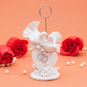 Держатель-статуэтка д/карточки "Голуби на сердце"