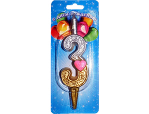 Свеча д/торта цифра "3" с сердечками
