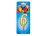 Свеча для торта цифра золотая "6"