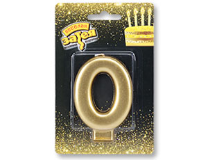 Свеча - цифра "0" Золотая 8см/V