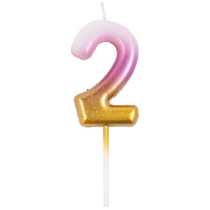 Свеча -цифра "2" Омбре розов/золот 6см/G