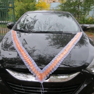 Лента д/авто "Волна" V-образная, шёлк, бело-персиковая 280*10 см,