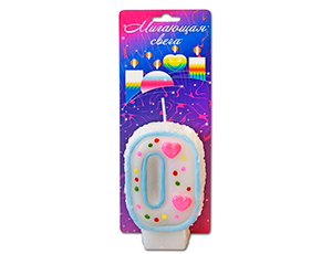 Свеча д/торта мигающая Хамелеон цифра "0"