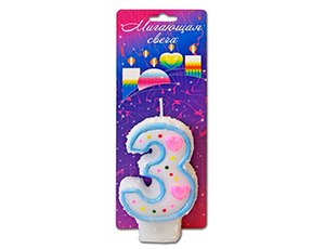 Свеча д/торта мигающая Хамелеон цифра "3"