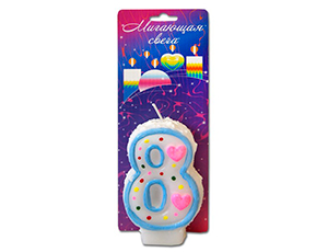 Свеча д/торта мигающая Хамелеон цифра "8"