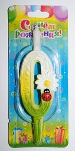 Свеча д/торта цифра "0" с ромашками