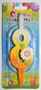 Свеча д/торта цифра "8" солнечная