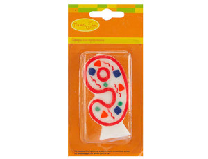 Свеча Цифра "9" Красное Конфетти W