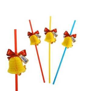 Трубочка д/кокт "Счастья!" колокольчик гофре (набор 6 шт)
