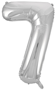Шар (34''/86 см) Цифра, 7, Серебро в упаковке