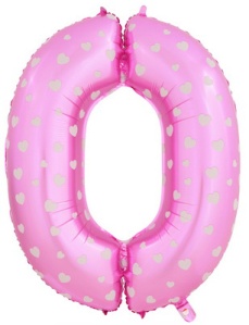 Шар (40''/102 см) Цифра, 0, Розовый с сердечком, в упаковке