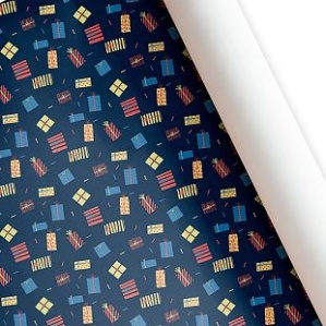Бумага подарочная "Подарки", Синяя, лист 60 см*87,5 см / 10 шт. /