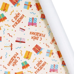 Бумага подарочная "С Днем Рождения. Подарки " лист 60 см*89 см