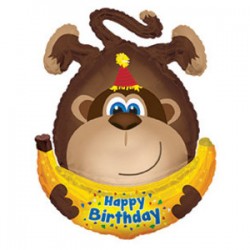 Шар (34''/86 см) Фигура, Обезьянка с днем рождения, Коричневый, 1 шт.