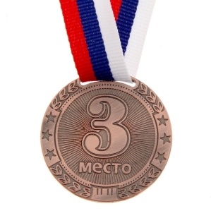 Медаль призовая "3 место" цвет бронза 4 см.